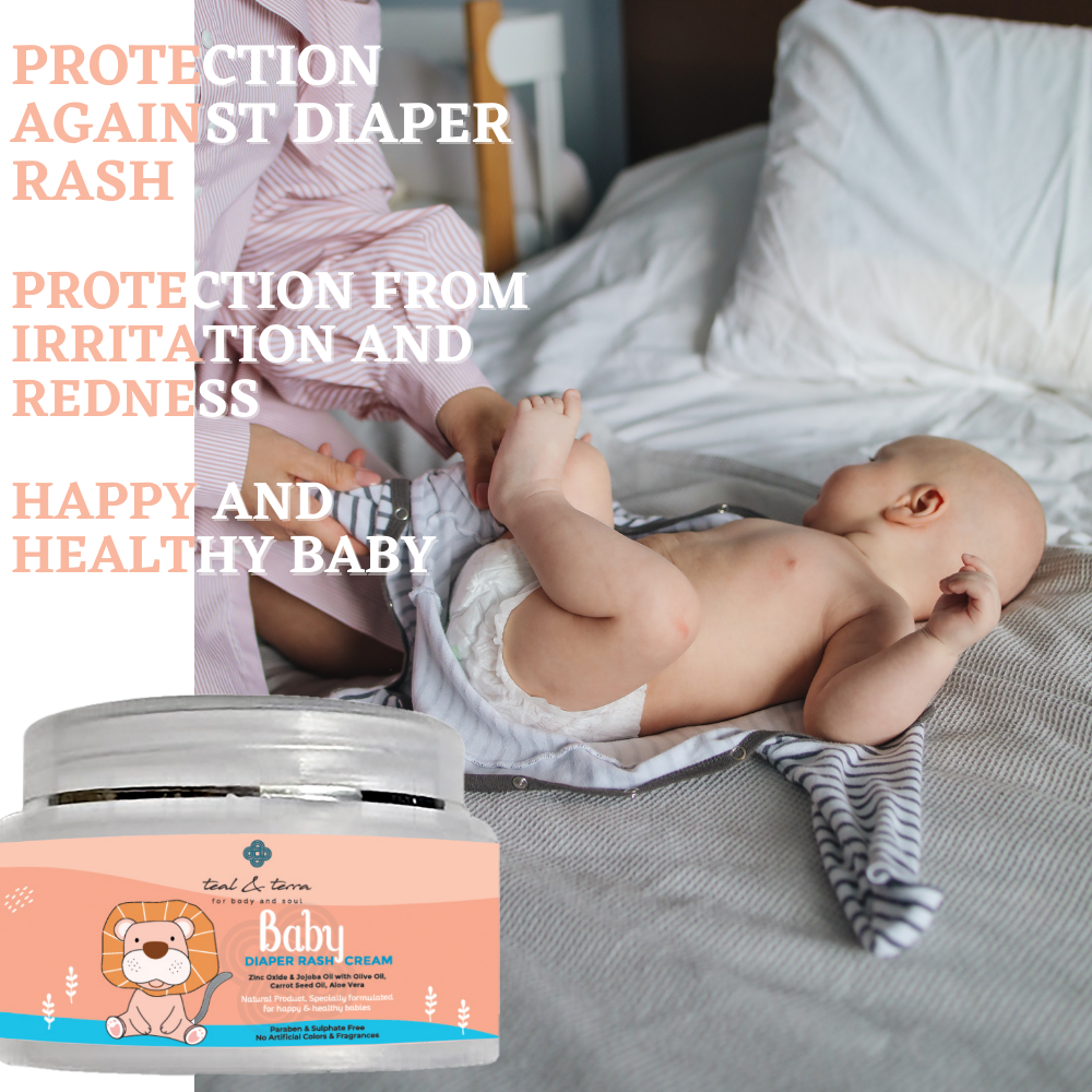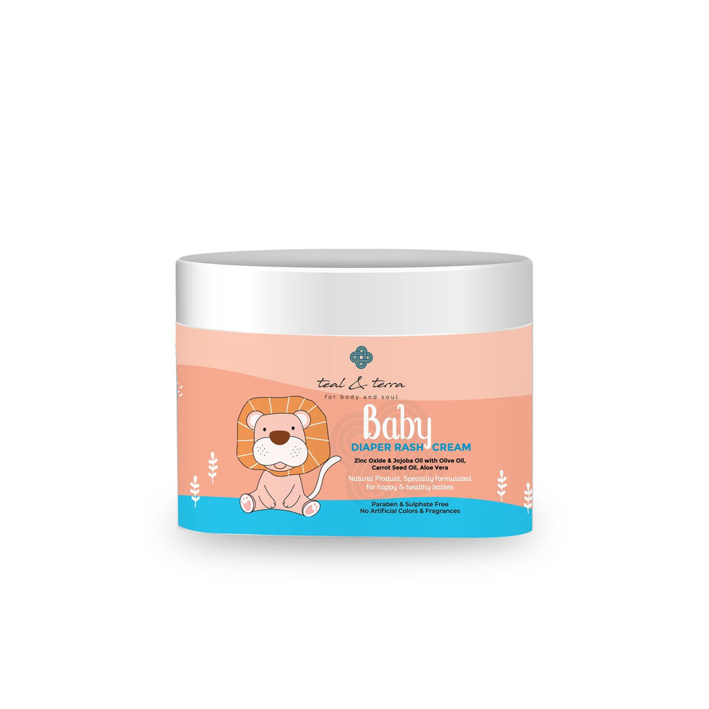Diaper rash and skin irritation are a common problem babies face. It causes skin inflammation and is an uncomfortable situation for the child. With Teal & Terra’s Baby Diaper Rash Cream prevent diaper rash, skin inflammation and irritation. It contains Zinc Oxide, known to treat rashes and chapped skin; Aloe Vera to soothe the disturbed skin and Carrot seed oil to moisturise and reduce redness. It acts on the affected area immediately to give relief and treat the rash. Designed for an infant’s fragile skin it provides a stunning soothing effect for your baby’s skin. It is a 100% Natural and Safe choice for the baby’s sensitive skin as it contains no chemicals, artificial fragrances or colours.