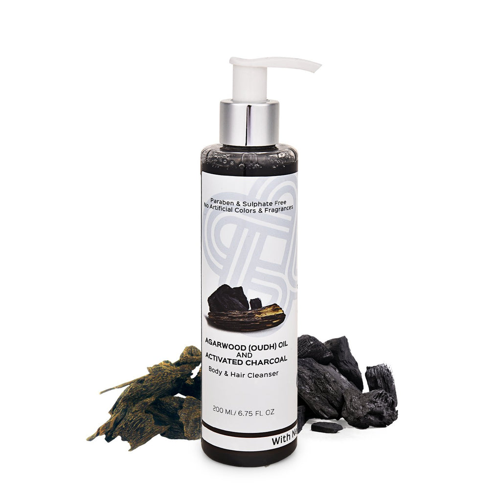 Teal & Terra Hair, Face & Body Cleanser with Activated Charcoal, Oudh (Agarwood) Oil With Neem Oil, Hibiscus & Aloe Vera